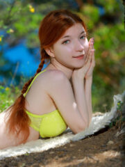 Teen redhead Fiona strips naked outdoors, revealing her stunning green bikini-clad body. Watch as she bares her ample breasts and offers a tantalizing up-close look at her wet, eager pussy in this amateur teen nude gallery.