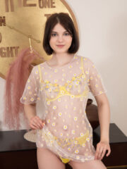 Indulge in stunning solo glamour as brunette beauty Sara Celeste slips out of her clothes, revealing a petite body in see-through lingerie. Don’t miss this naughty treat featuring hot bare ass and medium tits in an alluring pose.
