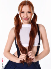 Watch stunning redhead Megan Longoria strip out of her schoolgirl uniform, flaunting her gorgeous curves and bare bald pussy in an enticing tease. A must-see nude reveal!